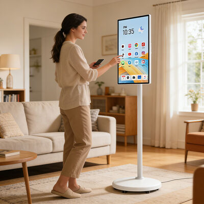 This 24-inch portable smart TV features a vivid 1080P Full-HD IPS display, wide viewing angles, and 250cd/m² brightness for clear visuals anywhere. Powered by Android OS with 10-point touch control and USB/HDMI/Wi-Fi connectivity, it adapts seamlessly to various needs. Its built-in rechargeable battery and smooth-rolling wheeled stand enable true cordless freedom. Flexible OEM/ODM support and low MOQ are also offered for customized business solutions.